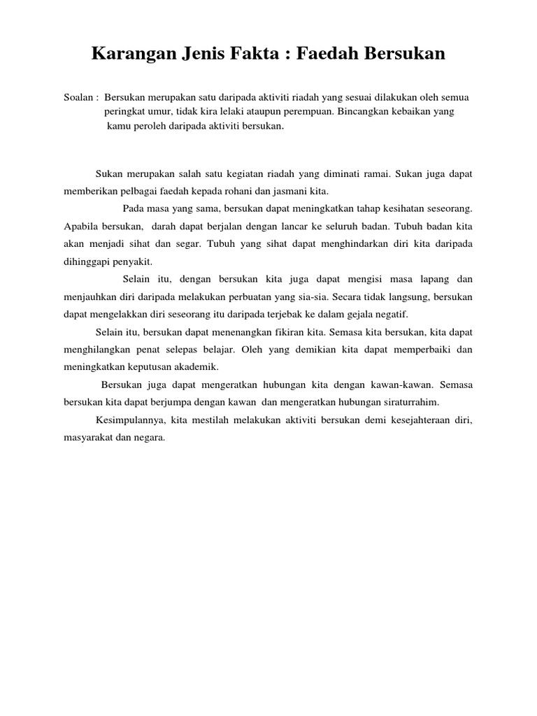 Contoh karangan jenis fakta bertajuk Kepentingan Kokurikulum. Banjir berlaku setelah hujan lebat tidak berhenti-henti selama landa negara kita terutamanya negeri-. 12062022 31 Pentaksiran Tingkatan 3.